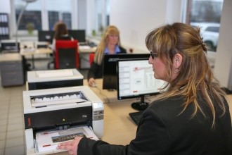In der Gehring Group arbeiten Gehörlose bei der Digitalisierung von Akten im eigenen Scan-Center Hand in Hand mit Kolleginnen und Kollegen ohne gesundheitliche Einschränkungen. Sie erledigen dabei alle Arbeiten, die auch die Hörenden leisten – von der Arbeitsvorbereitung mit Entklammern, Entheften, Glätten und Aufbereiten des Belegguts über das Scannen selbst bis hin zur Datenerfassung und Qualitätskontrolle.