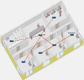 In der Praxis können somit beispielsweise Gebäude mit vielen Räumen oder kleineren Bereichen positionsgenau mit EkoTek® abgedeckt und der Außenbereich zwischen diesen Gebäuden mit den größeren Funkreichweiten der EkoSecure® Technologie ausgebaut werden. Dadurch lassen sich große zusammenhängende Gebäudeareale funktechnisch erschließen, auf denen Personen mit einem kleinen Zwei-Wege-Mobilgerät Notrufe auslösen bzw. Notrufe & Textnachrichten empfangen können.